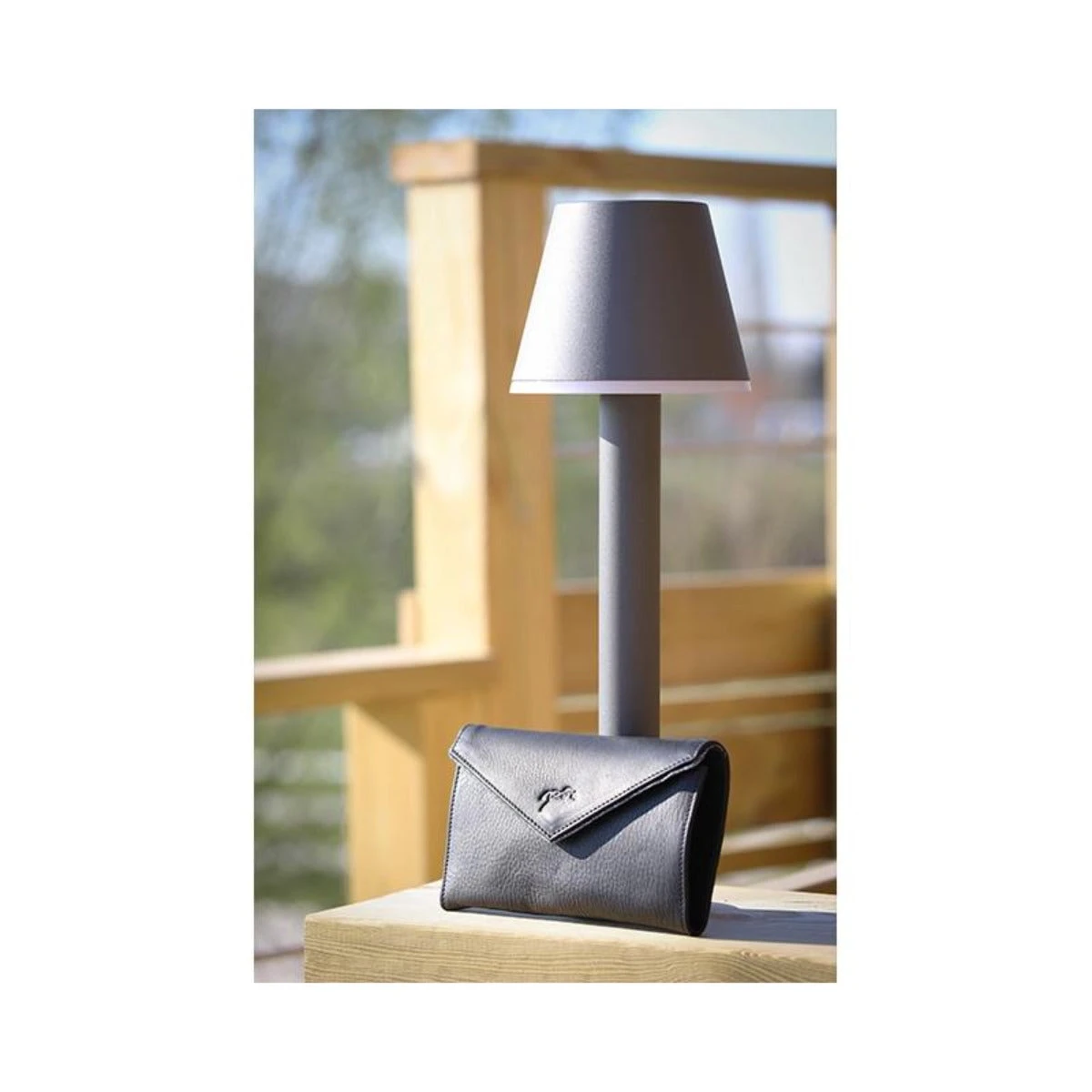 Very fancy and feminine wallet in a letter shape with a triangular shape flap, overcome with a shiny grey piping, and the Pénélope logo is printed in the leather.