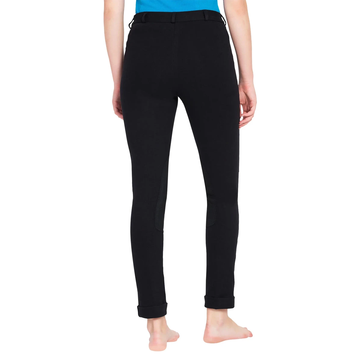 The TuffRider Ladies Cotton Jodhpurs are a great choice for adult amateur riders! They are available in two colors for showing and schooling, you’ll love the fit and feel. This cotton-based jodhpurs are soft, stretchy, and fit slightly lower on the waist. The traditional UltraGripp knee patches on riding pants will help avoid slipping in the saddle and the jods straps on the cuff are removable. Care Instructions: Turn inside out and wash with warm water (medium temperature) and mild detergent. Tumble dry low, no bleach, must wash separately.